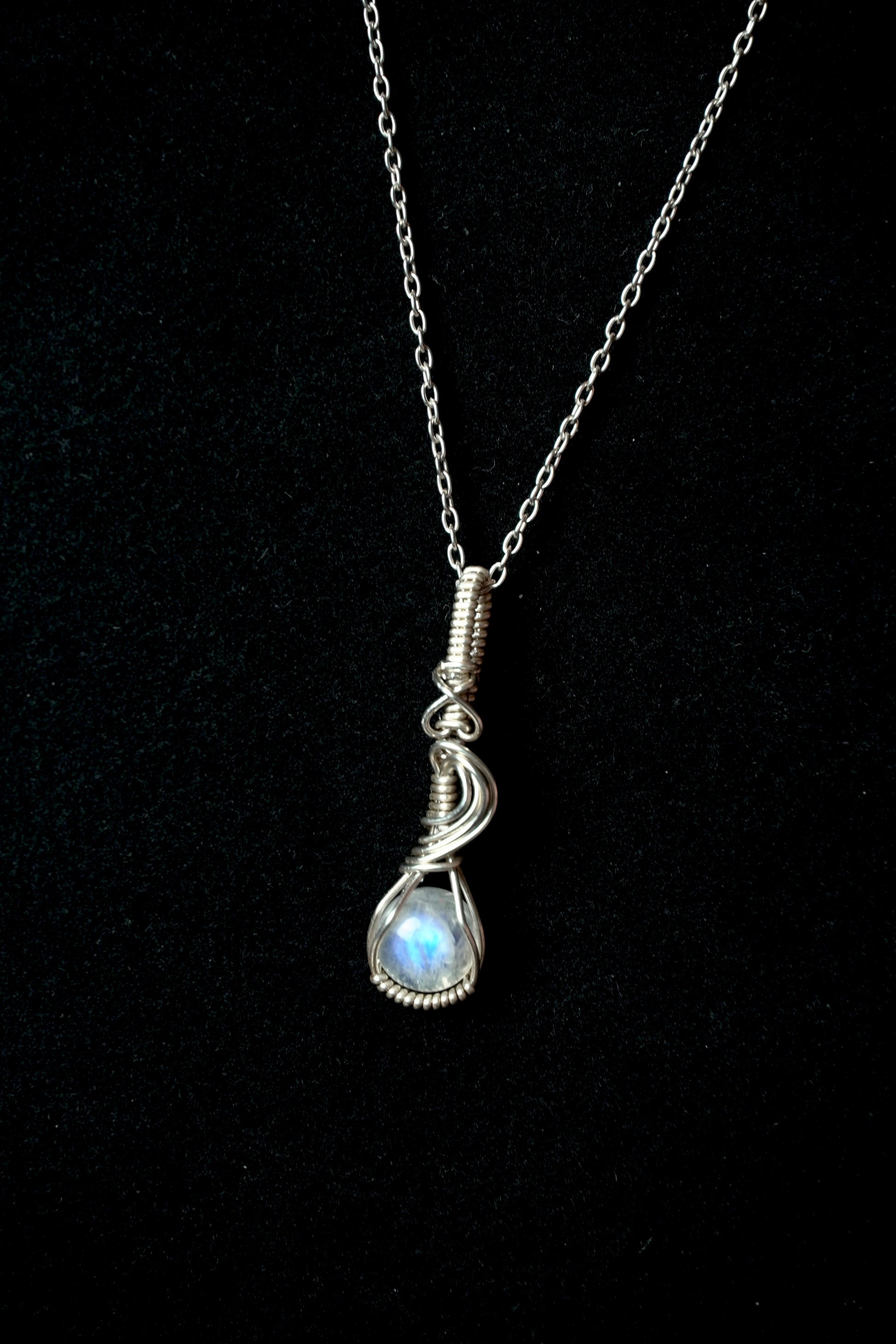 Sterling silver wrapped moonstone with adjustable 18/20/22 inch sterling chain